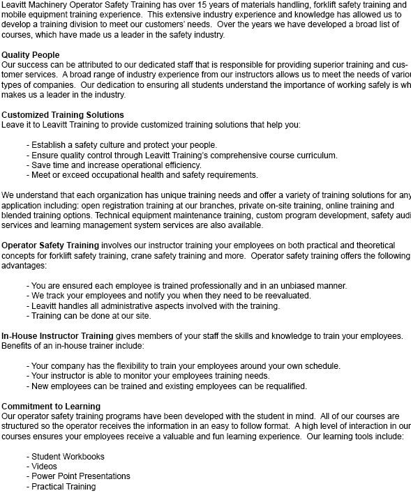 We provide several options to help educate your employees. Moreover, we present you two possibilities for training. We can offer it on-site or at our location of operations. Our knowledgeable team can tailor our training to your particular equipment at your location of operations.